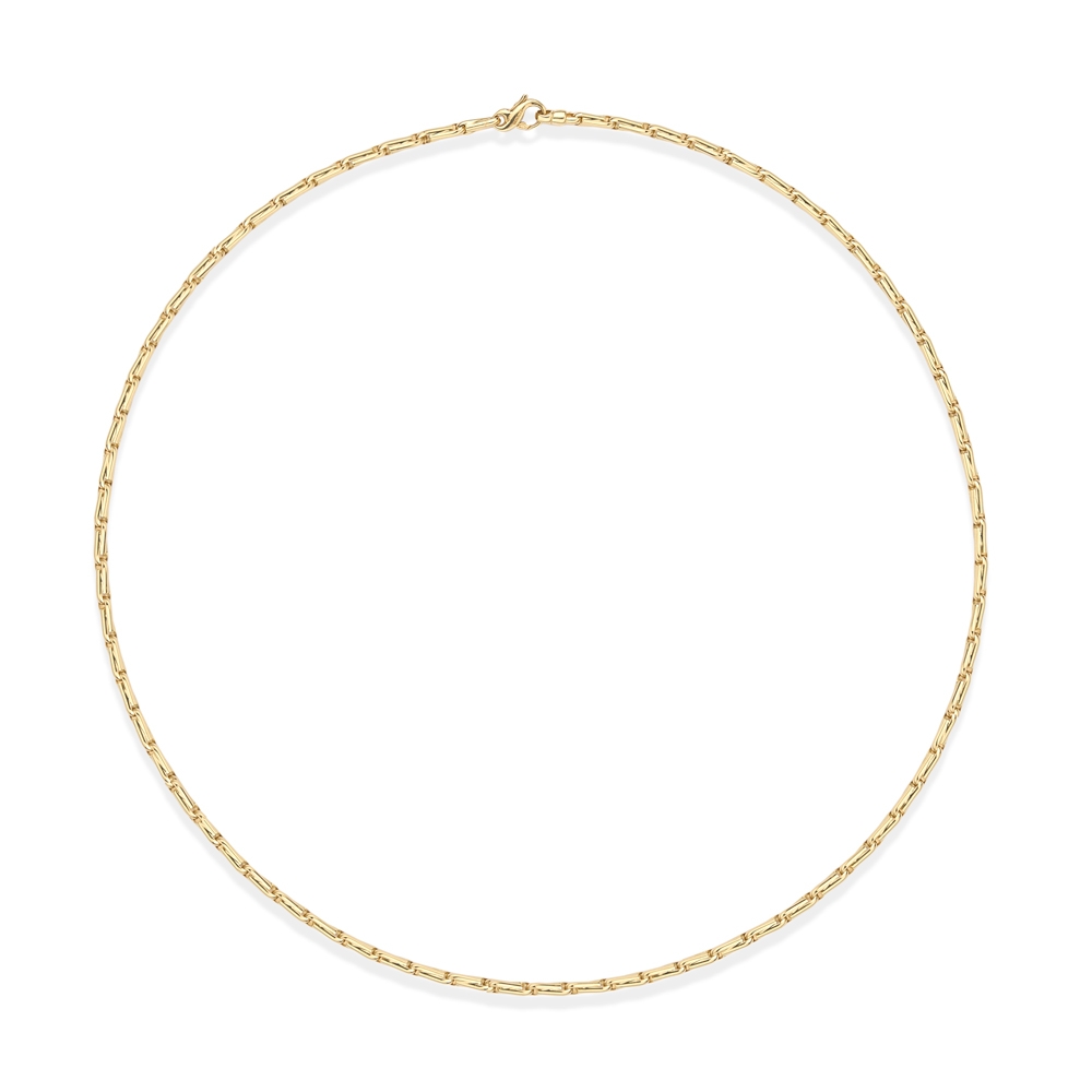 Named after its likeness in appearance, the hayseed or barleycorn link is seen here in an 18 inch long necklace with solid yellow gold links, crafted entirely in precious 18ct.